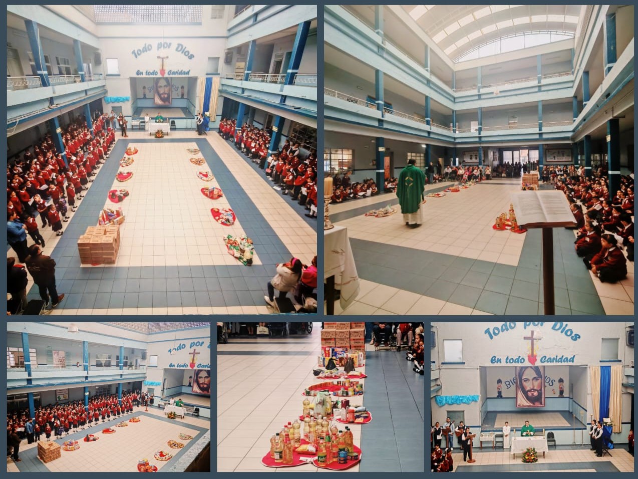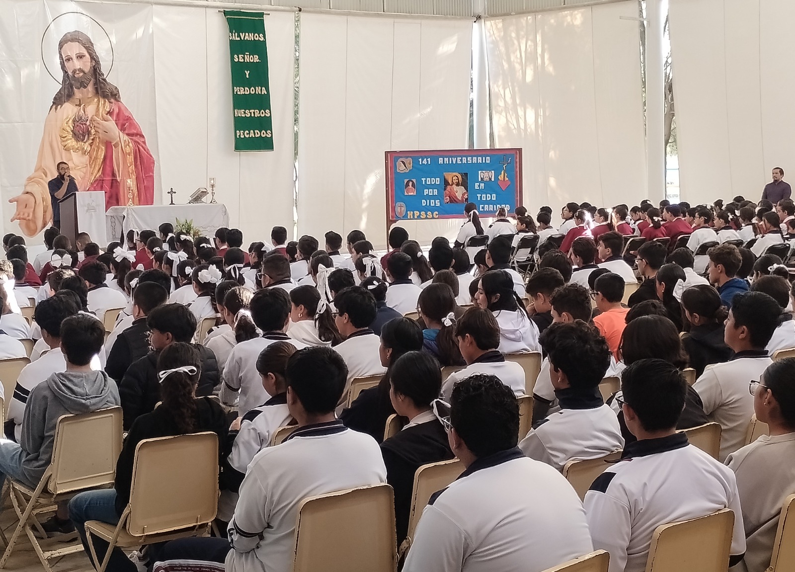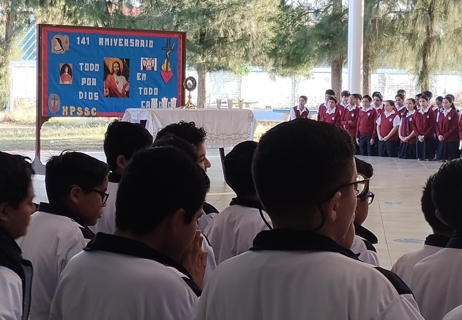 ya que además de celebrar la Misa de viernes primero de mes el pasado 03 de octubre, los alumnos, docentes y personal, realizaron un hermoso homenaje a la Congregación de nuestras religiosas, las Hermanas de los Pobres Siervas del Sagrado Corazón, que cumplen en este 2025, 141 años de su fundación. Realmente hermosa la participación de todos los grupos de estudiantes y padres de familia que se unieron a esta celebración.