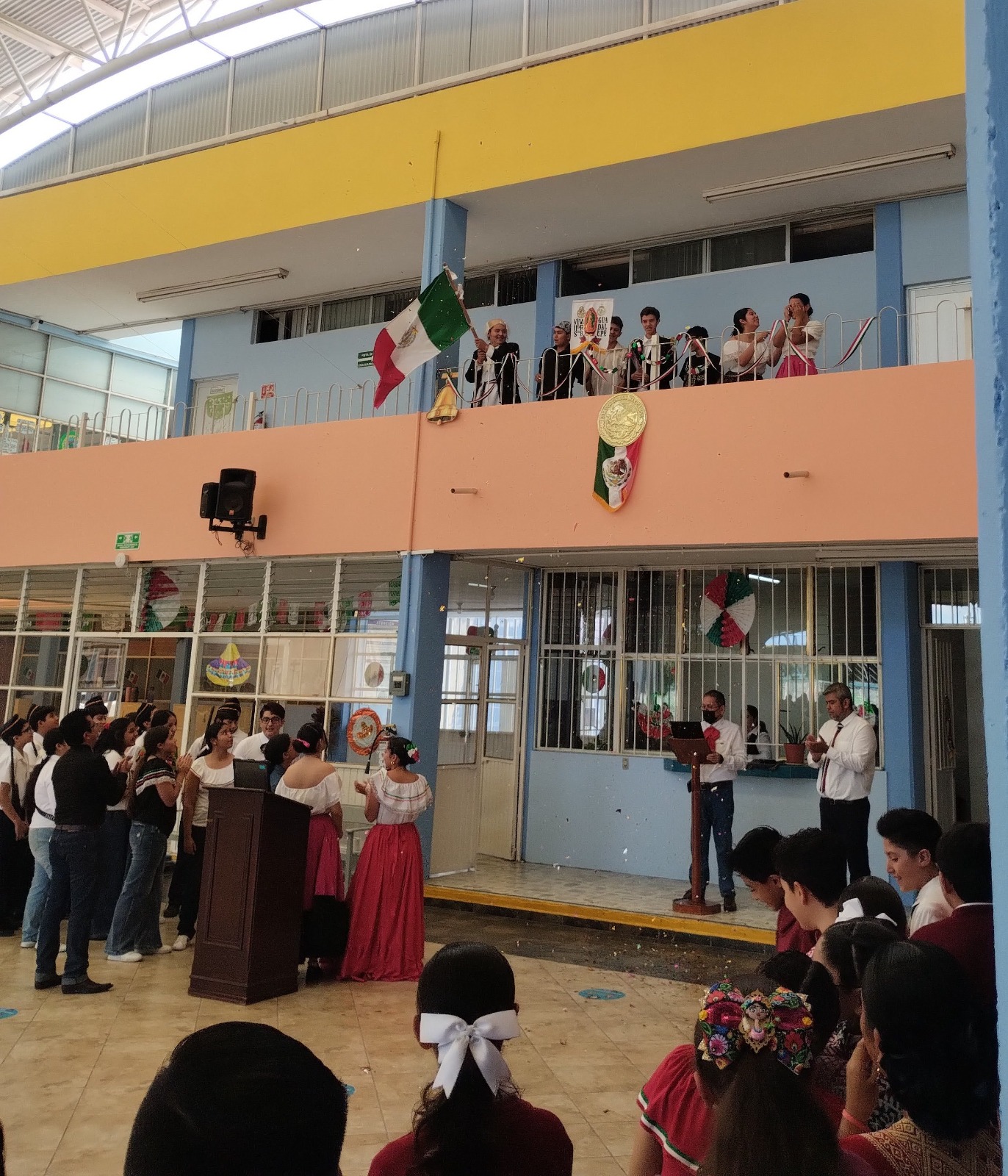 Los alumnos del 3° "A" de Secundaria encabezaron el día 15 el Acto Cívico del mes de Septiembre, y con una representación del grito de Independencia, y a la voz de ¡¡Viva México!!, celebramos las fiestas patrias en el Josefa.