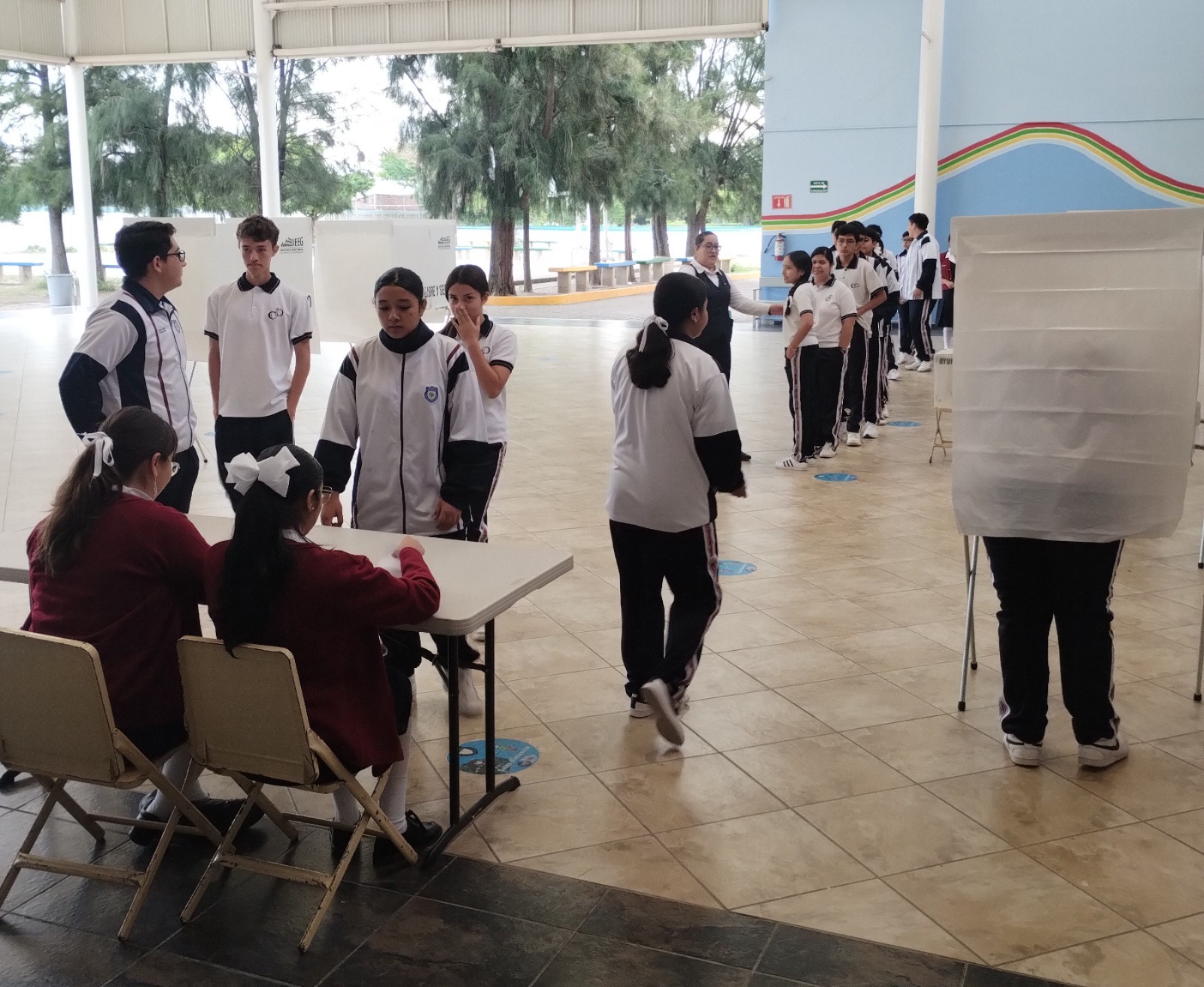 iniciamos el día con la participación de todos los alumnos de la Secundaria Josefa en el ejercicio democrático de la elección de la República Escolar, en coordinación con el Instituto Electoral del Estado de Guanajuato (IEEG), quienes se presentaron en nuestra institución e instruyeron a los estudiantes del proceso electoral y su importancia.